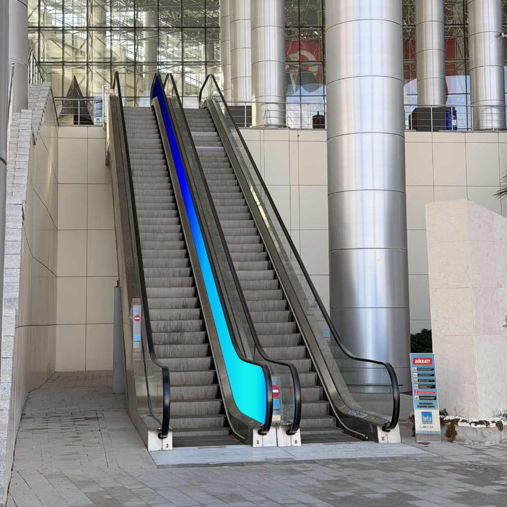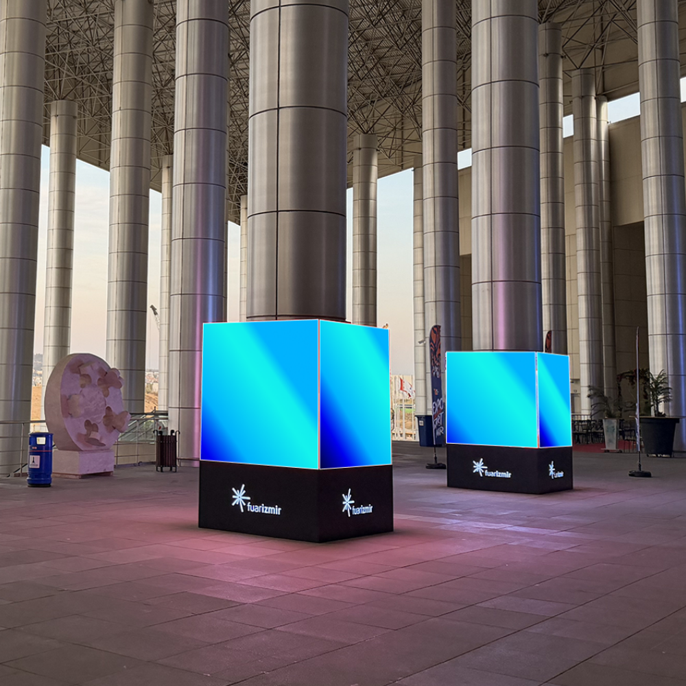 LED advertising positions are distributed across the main arrival route and Hall A entrance.